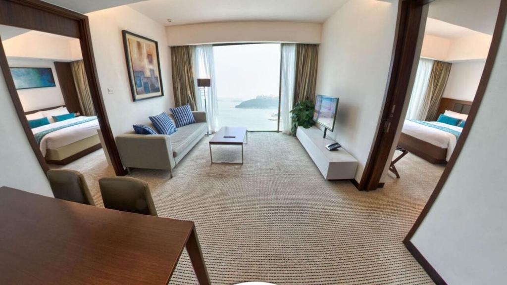 Auberge Discovery Bay Hong Kong offers a diverse selection of rooms designed to cater to various preferences and needs. Guests can choose from the cozy Mountain View Twin Room, featuring two single beds across 30 square meters, or opt for the Ocean Front Room, which spans 33 square meters and offers either two single beds or one double bed with stunning ocean views. For those seeking more space, the Mountain View One-bedroom Suite provides 60 square meters with a luxurious King Bed, while the Ocean Front One-bedroom Suite offers 58 square meters of comfort with an oceanfront setting and a King Bed. Additionally, travelers can select the Mountain View Double Room or the Mountain View Double Double Room, both approximately 30 square meters, with versatile bedding options. For larger groups or families, the 2-Bedroom Oceanfront Suite and the Standard Suite 2 Bedroom Sea View, covering 70 square meters, provide ample space and beautiful vistas. There are also accessible options like the Non-Smoking Accessible Twin Room, ensuring comfort for all guests.