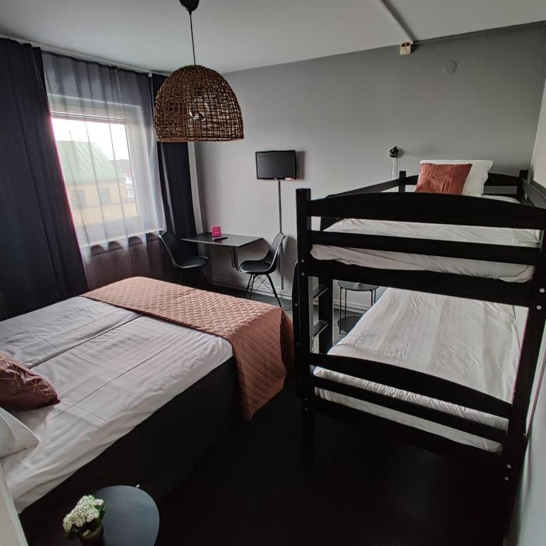 At CarlstadCity H Boutique Hotell, you'll find a range of comfortable and versatile room options to suit your needs. Choose from the Classic Triple Room, offering 18 square meters of space with either 1 Queen Bed or 1 Sofa Bed, perfect for small families or groups of friends. For larger groups, the Economy Quadruple Room provides 27 square meters of space with either 1 Bunk Bed or 1 Queen Bed, ensuring everyone has a comfortable stay.