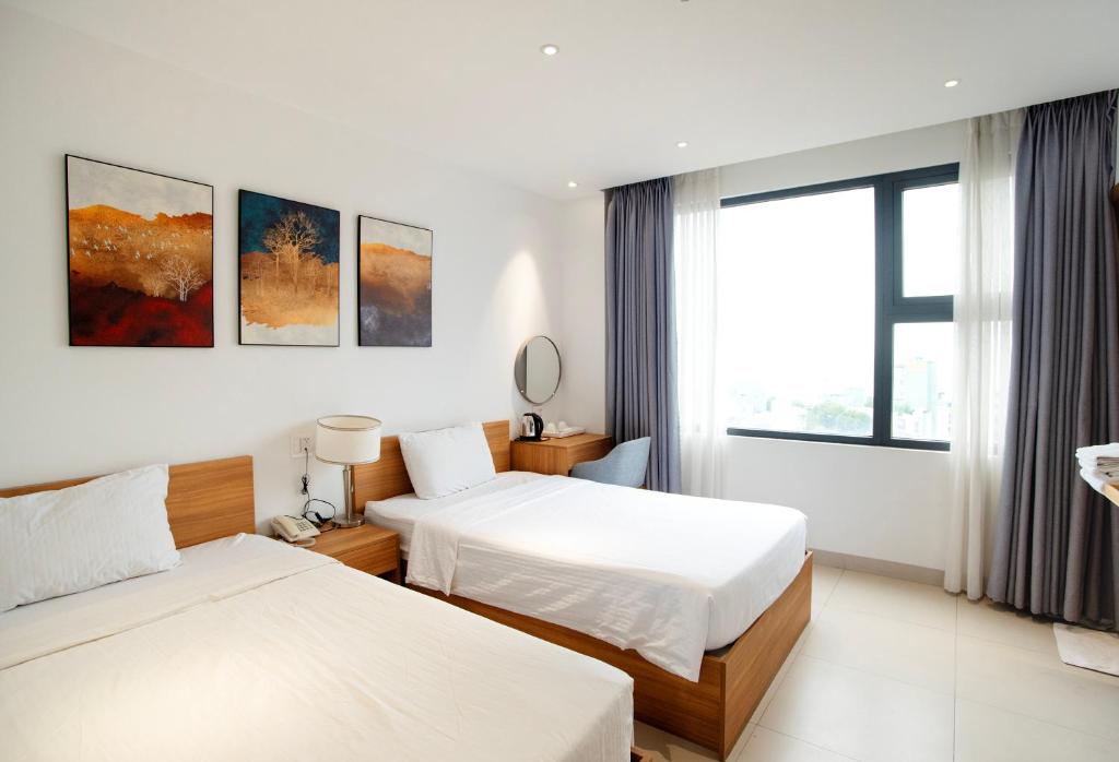 10 điểm dành cho sự nhiệt thành của các bạn nhân viên. Vô cùng tận tâm, cởi mở và dễ chịu, thật sự nhờ việc này mình mới quyết đặt khách sạn bởi các bạn hỗ trợ ngay cả khi mình chưa đặt phòng. Phòng cũng nhỏ xinh, đầy đủ tiện nghi và vô cùng sạch sẽ, điểm cộng lớn thứ 2. Có bữa sáng đơn giản. Gần biển tầm 300m là tới, cũng là khu có đồ ăn và cửa hàng tiện lợi. Một trong những lựa chọn vững bền cho chuyến đi lần tới