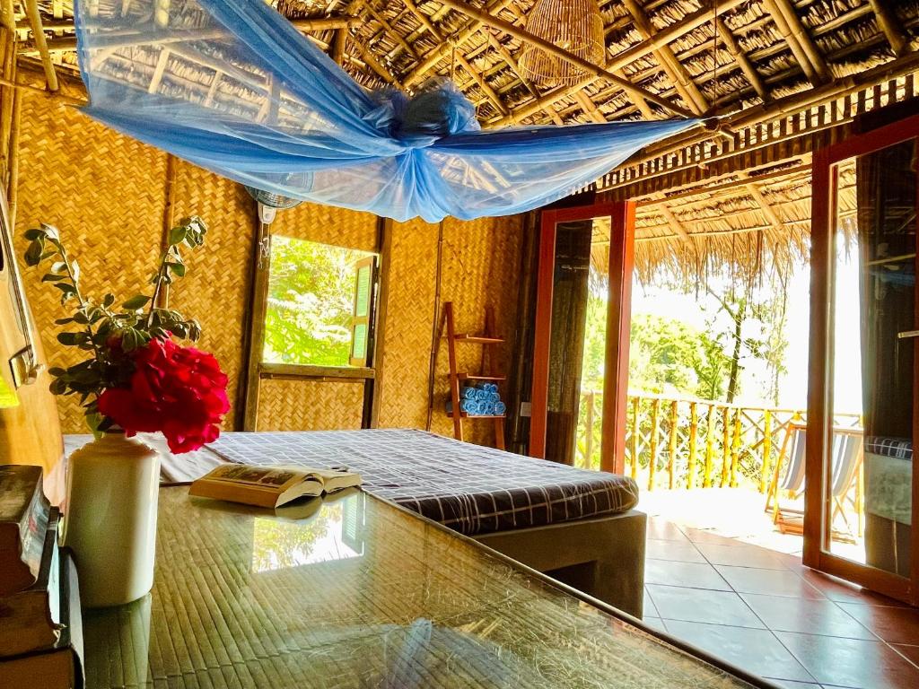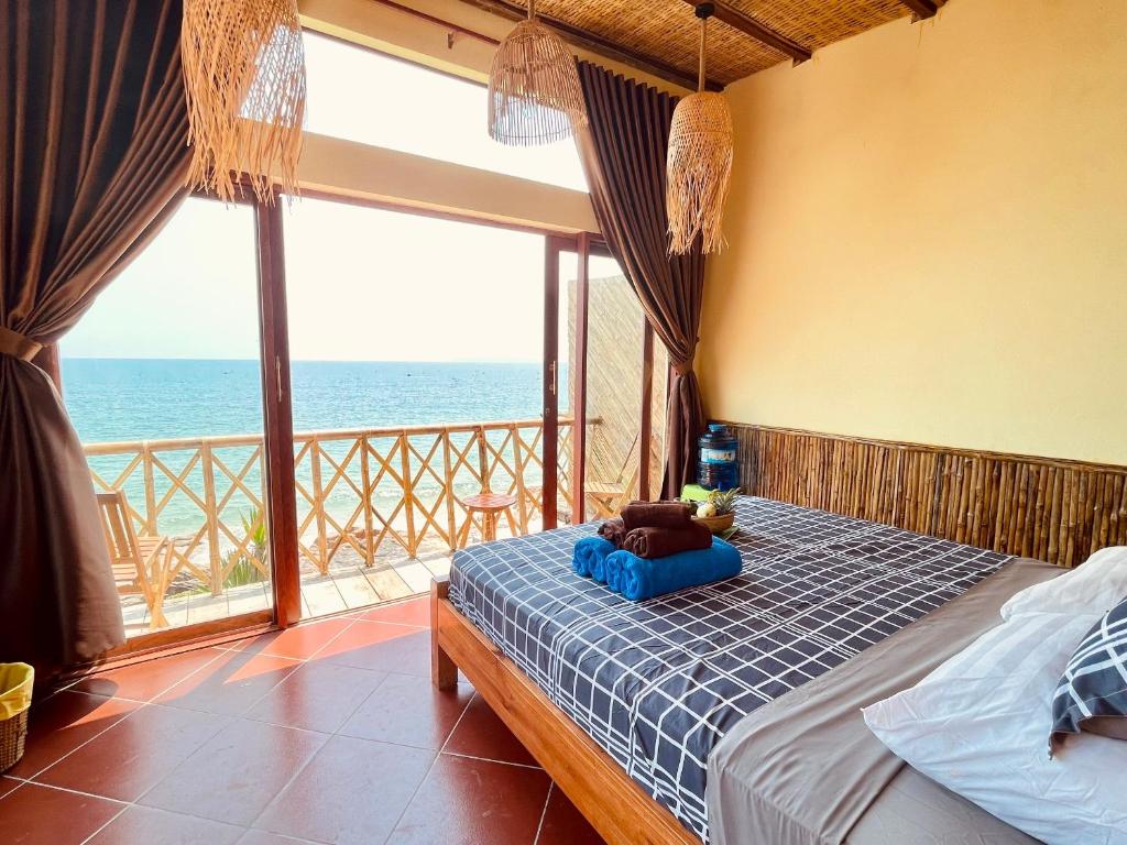 The rooms have beautiful views of an idyllic beach. The beach mostly empty throughout the day and the hotel doesn't have a ton of rooms so you're guaranteed a degree of privacy. The staff were really sweet, especially My who we visited a few times at her family's restaurant on Bãi Xếp beach for some delicious seafood. She was really welcoming and kind. They offer free beers on arrival and for helping clean up trash which is awesome. The bar is good and has some nice options and happy hour deals. The rooms are fine, though the spring mattress in our room was a bit sunken in and left my back hurting. Also, during the afternoon hours the AC struggled to fight off the scorching heat from outside. Also, our bathroom was a bit smelly. The room could also use some chairs. Lots of shelfing. No chairs. The food from the kitchen was universally disappointing from our experience. Maybe because we live in this country famous for its delicious cheap-eats, we're judging too harshly but the English muffin on my breakfast sandwich came out stale as a rock and with unmelted cheese, not to mention it was tiny. The đậu phụ sốt cà chua (tofu with tomato sauce) was expensive for a tiny portion and tasted really sweet like ketchup, not the traditional, savory flavor. The seafood chow mein was made with pasta noodles and dehydrated shrimp, it was better than the others but I'm sure this kitchen could do better with a few changes and some quality control checks in place. Overall, totally happy with our stay just for the view from the rooms and access to a beautiful, empty beach. Biggest problems were the kitchen and the sunken in mattress.